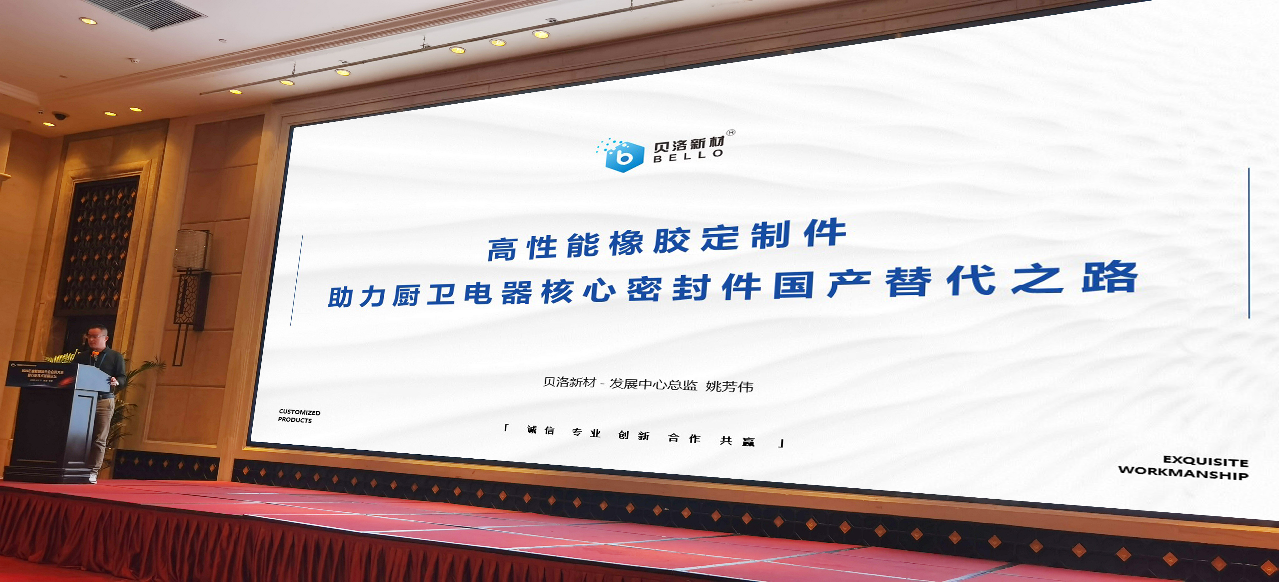 接下来,在会员大会暨行业发展论坛上,橡胶制品分会进行了工作汇报及行业经济运行情况,并宣布贝洛新材获得“橡胶制品行业单项冠军产品 - 燃气热水器水阀密封件产品” 南瓜高清播放, “2023年度橡胶制品行业 - 建立行业一流专精特新示范企业”,“2023年度橡胶制品行业 - 科技创新企业”荣誉。