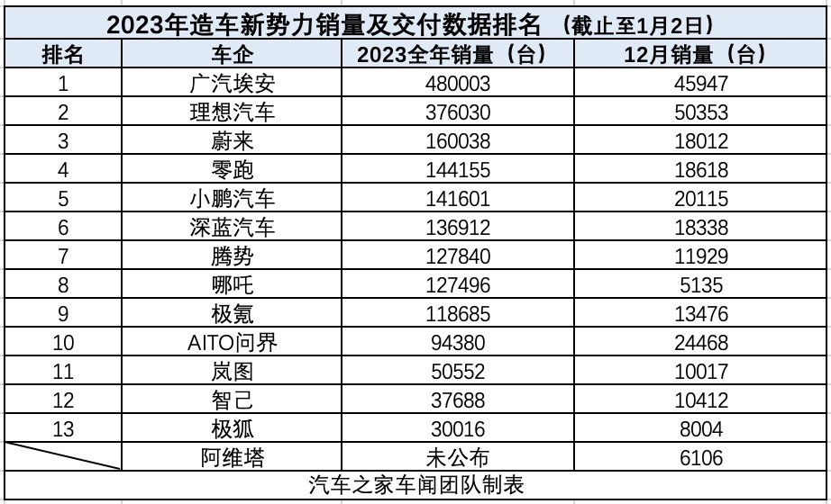 从12月份的销量数据来看,多数新能源车企销量均有大幅度的同比增长,比如智己甚至达到了同比增长2188%,月销量也突破了万台,岚图也同样突破万台销量,同比增长479%,极狐也实现了8000台的月销量,同比增长607%,AITO问界 南瓜影视资源,小鹏实现月销2万台,零跑和蔚来也接近月销量2万台,理想和埃安则在12月份销量“遥遥领先”,达到或接近5万台销量。
