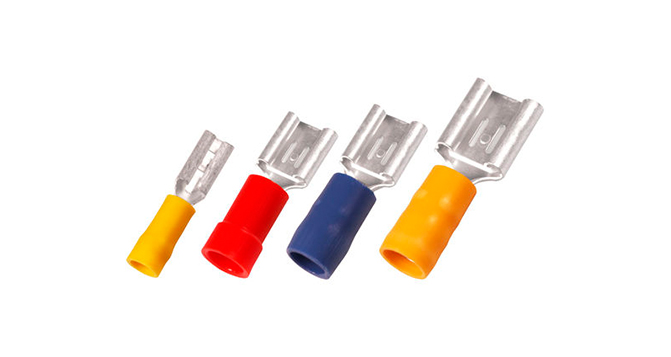 绝缘材料通常是乙烯基或尼龙。乙烯基不受湿度的影响,而尼龙会变脆。热缩绝缘端子可耐水、盐、腐蚀和高温。它们的内壁内衬有热熔胶,在室温下呈惰性。电线很容易插入接头和端子中。当套筒被加热时,粘合剂会熔化,形成紧密的防潮密封,具有耐磨性和耐化学性。