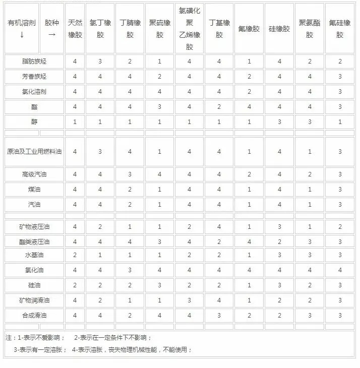 2、常用制作油封材料 - 橡胶耐介质表