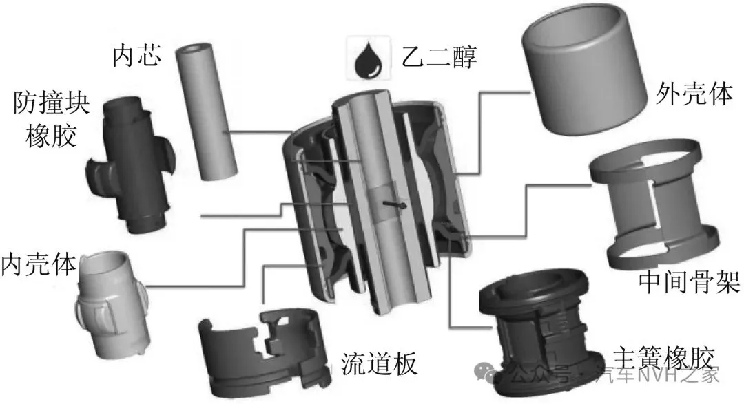 ▲ 液压衬套结构(汽车NVH之家)