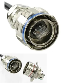 ▲ Amphenol Pcd 坚固耐用的以太网解决方案包括带有内部 RJ45 的螺纹圆形连接器