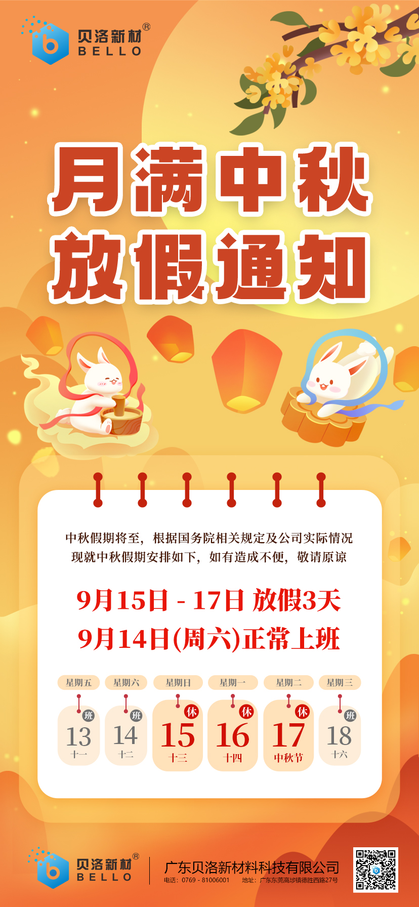 9月15日-17日放假3天