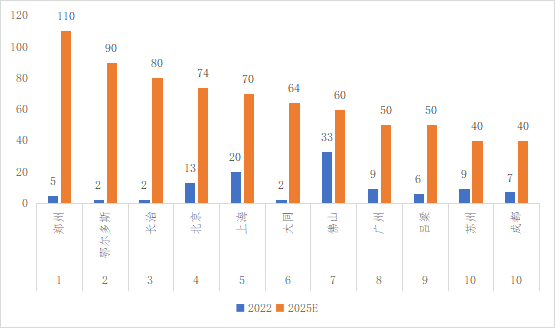 以2025年规划的加氢站数量为节点 南瓜高清播放,我们整理出国内TOP10加氢站规划建设城市。