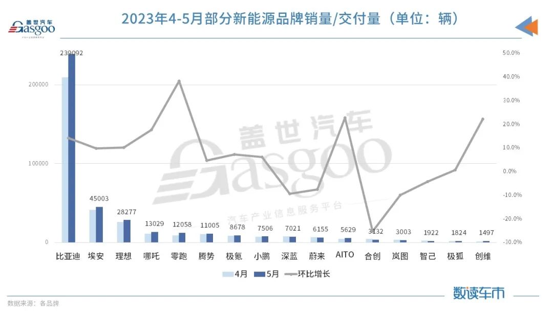 2023-06-20 14:06:36 (南瓜影院在线观看)5月份国内车市整体呈现良好态势,根据乘联会公布的数据,乘用车厂商的批发销量达到了199,7万辆,同比增长了25,4%,环比增长了12,4%。今年以来的累计批发销量达到了882,7万辆,同比增长了10,4%。需要特别提到的是,5月份销量超过万辆的乘用车企业共有30家,其中有7家同比增速超过100%,22家同比增速超过10%。可以看出,主流乘用车企业在5月份都取得了相当不错的增长。 从车企销量前十榜单来看,5月份的情况相对稳定,比亚迪依然是市场影响力最大的品牌,也是唯一一个月销量突破20万辆的车企。在销量前五名中,有四家是自主品牌。 南瓜影院。
