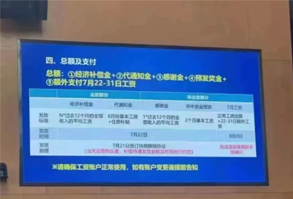 非法定部分则包括感谢金,年中奖金预发,7月工资等,具体来看,感谢金计算方式为过去12个月的平均工资,年中奖金预发则为2个月的基本工资,而7月份工资则会按正常结算方式,外加22-31日的额外工资,补偿金发放的前提条件是员工必须在7月21日签订协商解除协议,并且在8月3日前完成退宿等离职手续确认 南瓜影视资源,此外,广汽丰田也正在协同劳务派遣公司一起为被裁员工推荐再就业岗位,对此,网友纷纷留言表示赔偿方案比较厚道, 。